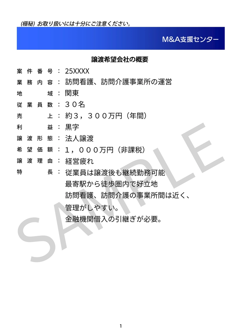 匿名概要書は会社が特定されないように、弊社アドバイザーが作成しています。実際の案件を見てみましょう